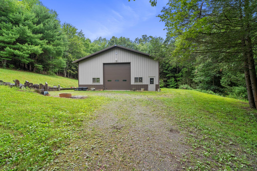 Discover the perfect blend of space, privacy, and outdoor recreation with this impressive property featuring a spacious 42x60 Morton building. Boasting concrete floors, 14-foot sidewalls with a raised truss system, and a convenient 14-foot electric garage door, this versatile structure offers endless possibilities--convert it into a full-time residence, a workshop, or a hobby space.