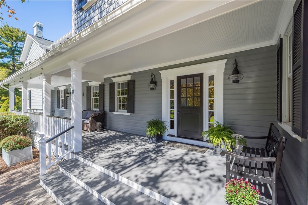 Nestled on 5 acres in Sewickley Heights, this modern farmhouse blends contemporary design with classic charm. The 1900 home offers approximately 4,750 square feet of living space. Inside, chic details, such as wide-plank hardwood floors, beautiful tile & whimsical wall-coverings, offer an elevated take on timeless style. A standout eat-in kitchen with an antique architect's cabinet island, custom cabinetry, & stainless steel appliances. On the 2nd floor you will find four generously sized bedrooms with bright windows. Contemporary bathrooms feature classic penny tile, marble vanities, frameless glass showers & modern fixtures. The property also includes a spacious barn, ideal for entertaining or storage, & a three-car garage. Enjoy seamless indoor-outdoor living with expansive porches & a patio. This charming property offers the perfect blend of seclusion & convenience. Situated near the 6th Hole at Allegheny Country Club, you're just minutes away from schools, shops, & restaurants.