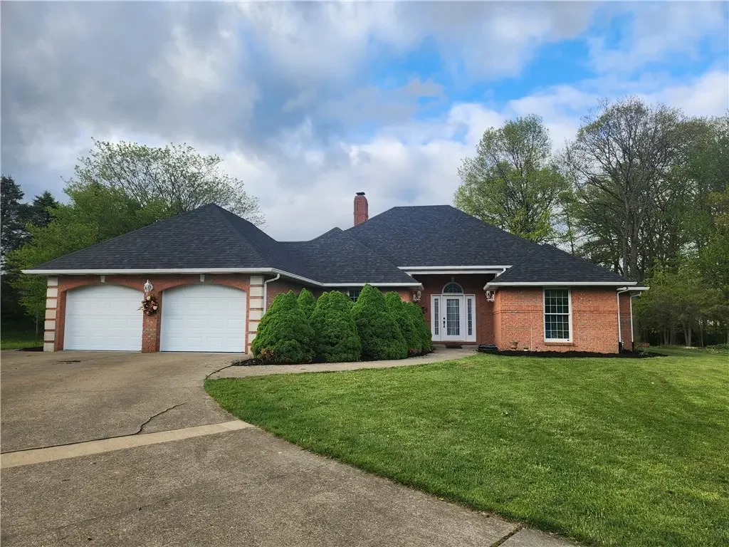 Welcome to this stunning all-brick ranch in the sought-after Stirling Glen neighborhood! NEW 30 year shingles, Chimney Flashing & Ice Guard, Fresh paint in the kitchen, NEW A/C & Furnace! Enjoy an open-concept kitchen w/a cozy breakfast area that overlooks the peaceful backyard. Step out onto the large cement patio, ideal for entertaining guests or relaxing in the fresh air. The private master en-suite offers comfort & convenience, the second bedroom also offers an en-suite thoughtfully designed for family or guests. The attached two-car garage provides easy entry & additional storage. Downstairs you'll find a fully tiled, expansive basement featuring multiple rooms-great for a home office, gym or extra bedrooms. This home combines quality craftsmanship with modern flexibility in a quiet, convenient location. Don't miss your chance to tour 111 Saddlebrook Circle-schedule your private showing today!