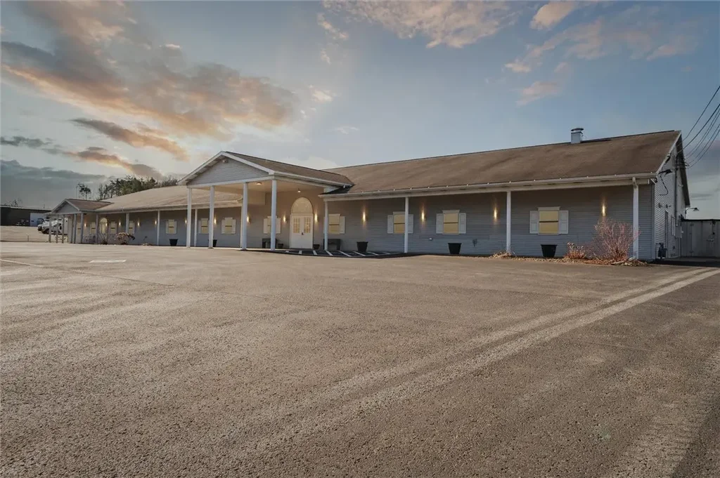Discover a unique opportunity with this expansive 10,000+ sq. ft. commercial property along the high-traffic US-422 corridor. This building is free span, opening up the possibilities for you to make this building exactly what you need to suite your business needs! A fully-equipped commercial kitchen includes a walk-in freezer, fire guard suppression system, and walk-in pantry. The property also boasts a dedicated shower and beauty room with salon equipment, plus a spacious 3,200 sq. ft. activity room with cathedral ceilings—perfect for events or recreational use. Additional features include three office rooms, robust 3-phase electric, a tankless hot water heater, and a diesel-powered generator for backup power. The large, blacktopped parking lot provides 18+ spaces for convenience. This versatile space features 8 bedrooms with a shared half bath, 4 bedrooms with full baths, and 8 bedrooms with private half baths, ideal for group accommodations or transitional housing.