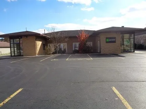 Modern, 1 sty commercial bldg with paved parking located on 3 lots. Brick/Vinyl exterior. One side of bldg is currently available for lease. The other side of the bldg is leased to H & R Block (with limited years left).