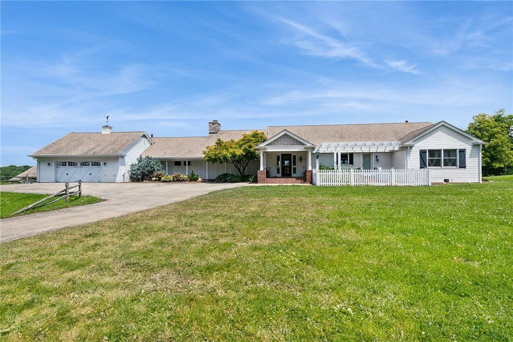 Welcome to your private retreat! Nestled on 5.068 beautifully maintained acres, this expansive 4 bedroom 4 bath ranch offers the prefect blend of country charm and modern comfort. This property is ideal for those seeking space, serenity, and the true ranch lifestyle. The luxurious master suite includes a sitting room, double sinks and a sunken jetted tub. The kitchen is a chefs dream with a large island ideal for casual gatherings. It has abundant cabinetry and quality appliances. The lower level has cork floors, sauna, large laundry room, full bedroom and full bath. There are stunning views of the surrounding landscape throughout the home. Enjoy outdoor living on the flagstone patio that has an electric awning, gazebo and pond. A 3 car garage and barn provide ample storage and flexibility. This beautifully designed home offers both luxury and function, perfect for relaxing, entertaining, or embracing a serene country lifestyle.