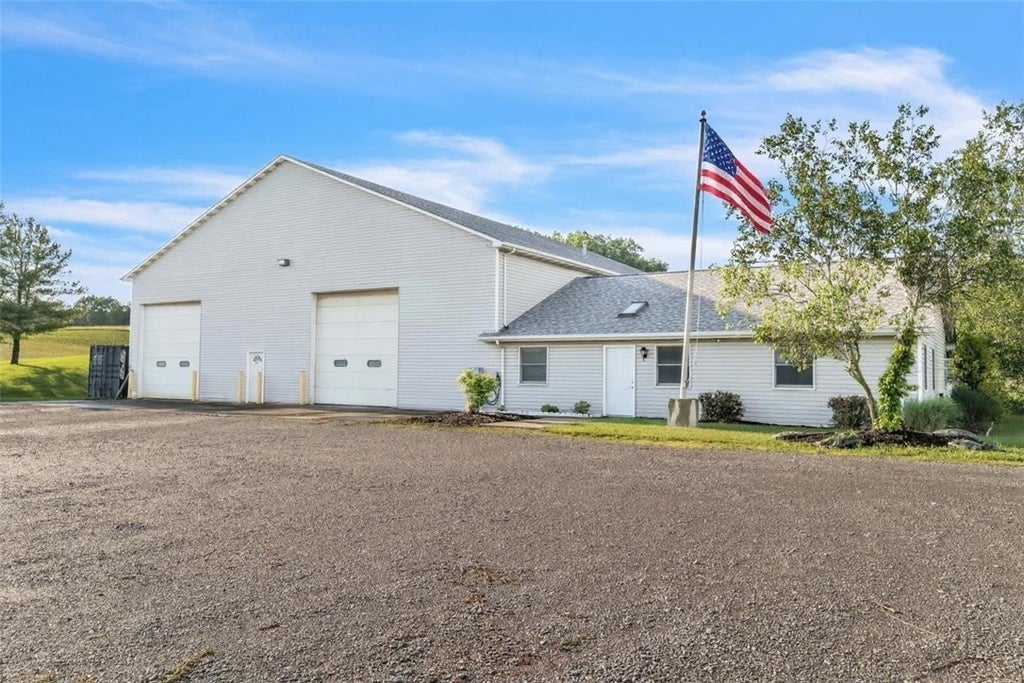This expansive 9,000-square-foot industrial building offers exceptional functionality and flexibility. Constructed with a durable 7-inch concrete floor reinforced with rebar and fiberglass additives, the space is built to handle heavy-duty operations. The facility features three oversized 18' x 18' garage doors for easy vehicle and equipment access, a large open warehouse area, and mezzanine levels ideal for additional storage or supervisory offices. A new roof installed in 2023 ensures long-term protection. Inside, multiple office spaces support a range of business operations. With over 150 parking spaces on-site, this property is well-suited for a multitude of uses. Another unique feature of this property is that part of the parcel is situated in Summit Township, and the other is sited in Jefferson Township - convenient location. Additionally, there is direct access to the Butler-Freeport Community Trail. You can explore options from business operations to private kennels/stables!