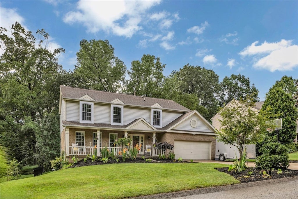 Welcome Home! The updated 1st floor features a large dining room, kitchen with a split island, granite countertops, laminate flooring, and a stylish mix of recessed and pendant lighting—perfect for both cooking and entertaining. The kitchen flows effortlessly into the family room, complete with a wood-burning fireplace that sets the tone for relaxing evenings. Upstairs, you'll find 4 bedrooms, including a primary suite with a walk-in closet, a bonus room ideal for a home office or craft space, and an ensuite bath with a double vanity, soaking tub, and separate shower. The finished basement offers endless possibilities—whether it's game nights, a home gym, or additional living space with walkout access. Step outside to a covered deck with retractable shades a fan, light and tv for entertaining, a covered patio with a firepit, shed and a fenced-in yard. Located in a desirable neighborhood of Murrysville and Franklin Regional SD this home is move-in ready and waiting for you!
