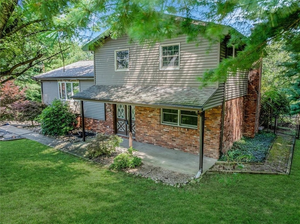 Lovely Home with lots a wonderful space for flexible living. Foyer leads to the Living Room with Bay Window and Beautiful Wood Ceiling Beams. Off the Eat-In-Kitchen is the Dining Room perfect for entertaining Family and Friends. Just steps away through the sliding glass door is a Two-Tiered Deck for summer BBQs that leads to the Fenced Rear Yard for relaxing and has a Fire Pit, Enjoy time in the Family Room with a Wood Burning, Stone Fireplace during the cooler months that also has access to the the Rear Deck. Primary Bedroom showcases a Gorgeous Decorative Wooden Wall and has access to the Full Bathroom with Tub/Shower that opens also to the Main Hallway for dual use. Bedrooms are ample size for your treasured furnishings. Fourth Bedroom off the Foyer would also make an ideal Home office or Guest Room with a Powder Room nearby for convenience. Long, paved Driveway offers lots of off-street parking. Mature landscaping features a wooden, open-style Gazebo too. Storage Shed included.