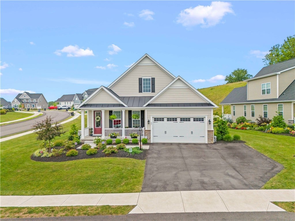 Modern Comfort-Timeless Charm on a Corner Lot situated in Laurel Landings community. Bennington model, stunning ranch home is just 2-yrs new greeted by lush landscaping. Inside-discover an open floor plan seamlessly connects the main living spaces—ideal for entertaining guests or relaxing at home. Living room flows into the dining area & a modern, well-appointed kitchen, complete with sleek cabinetry, ample counter space, & stainless-steel appliances. Three spacious bedrooms & three full baths, offering ample accommodation for family and guests. Master bedroom features generous closet space and an ensuite bath with double vanity and a walk-in shower. Additional bedrooms thoughtfully designed to provide comfort and flexibility. Lower level is finished providing a versatile area. Whether you envision cozy movie nights or lively gatherings, this expansive area is ready to adapt to your lifestyle. Spacious deck overlooks the meticulously landscaped yard perfect spot for morning coffee.