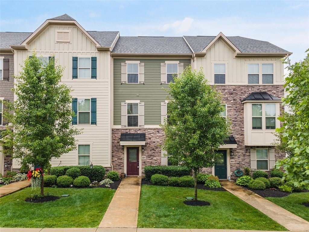 This meticulously updated luxury townhouse in Fairmont Square within the North Allegheny School District is move-in ready. Main level features new luxury vinyl plank flooring, fresh paint, and updated carpet on stairs. The open floor plan offers 9-foot ceilings, crown molding, and abundant natural light. Kitchen includes granite countertops, stainless steel appliances, pantry, and oversized island perfect for entertaining. The primary suite has a walk-in closet and dual vanity bathroom. Two additional bedrooms share a full bath. Top-floor laundry with washer and dryer included. Finished lower-level bonus room ideal for office or gym. Private deck, extra guest parking, and nearby walking trails. Convenient access to PA Turnpike, downtown Wexford, Cranberry, Mars, shopping, and dining. Low-maintenance living with all appliances included.