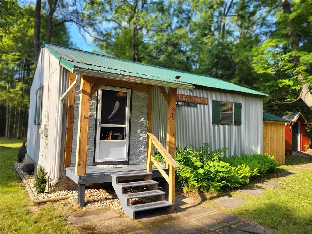 Don't hold the name against it, saw a live one there! This family owned camp was built in the 70's and addition in 1984. Metal roof (5 years), metal siding, deck (4 years). Large storage shed has newer roof and ceiling. Dwelling is rapidly heated by the propane stove or electrical/kerosene heaters. Window air conditioner keeps you cool in the summer. Fantastic newer deck, fire pit and level lot. This is walking distance to the Francis and Cross Pennsylvania Adventure Trails in the Allegheny National Forest. Will not last, updates and care in this one is evident. A place to hunt, hike or just relax. Clarion River & all that type of fun just minutes away.