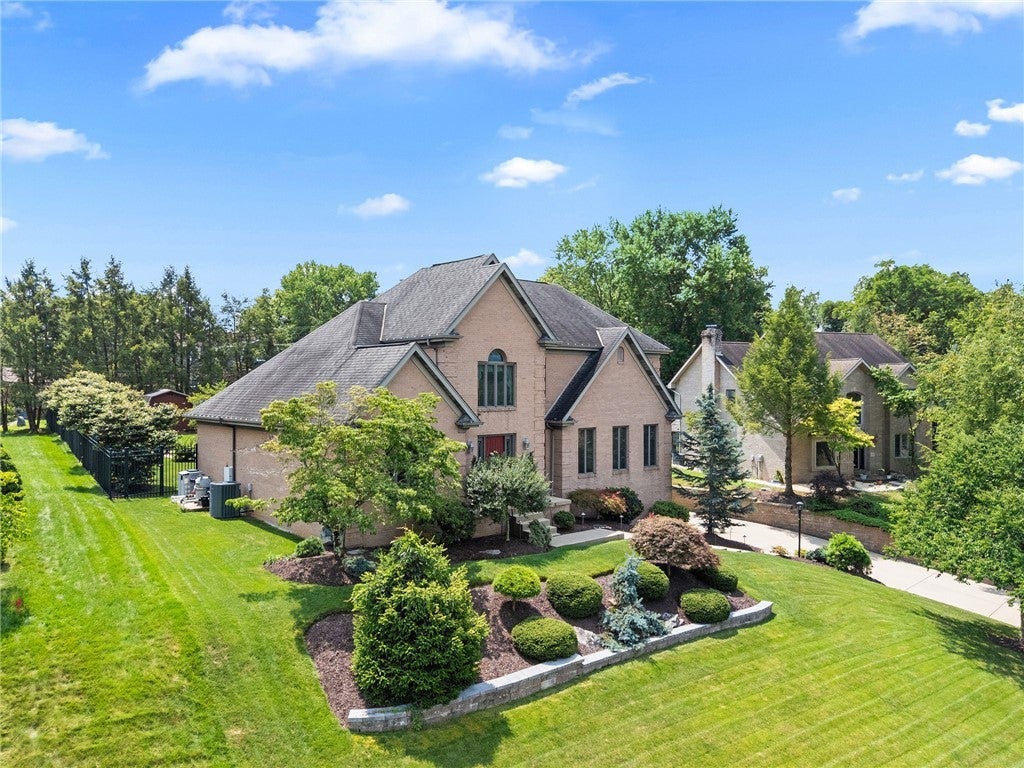 Beautiful custom brick Traditional on cul-de-sac lot. Totally remodeled kitchen & breakfast area w/Wolf Induction stove top & disappearing exhaust, center island, wine refrigerator, wet bar area, convection oven & microwave. 1st floor laundry w/shower & access to rear pool. Sunken family room w/vaulted ceiling, fireplace, skylights & bedroom loft overlook. 1st floor den or living room. 1st Floor primary suite w/ window seat & vaulted ceiling. Updated second floor bath & half bath. Massive finished lower level includes 5th bedroom, full bath w/sauna & game room. Secluded rear yard offers professional landscaping & 12 volt lighting, heated 18x36 in-ground pool w/chlorinator filter & auto pool vacuum. 13x34 canvas covered patio, 6 ft fence, gas grill & wicker furniture, deduct water meter for pool, custom blinds, recessed lighting