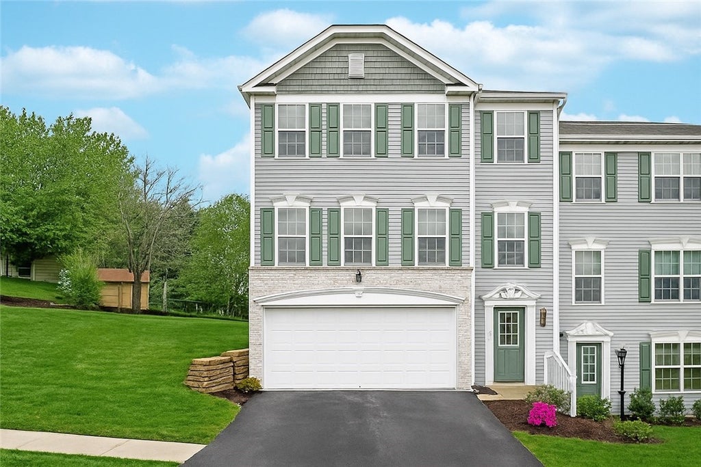 Prime Moon Township location! This stylish 3BR, 2.5BA end-unit townhome puts you minutes from Robert Morris University, shopping, dining, parks, schools, the airport, Downtown Pittsburgh, and major highways. Step inside to an open, light-filled open layout with a cozy gas fireplace, a kitchen boasting a large island with seating for three, with ample counter space and a patio leading to a level yard, perfect for entertaining. Main-level laundry adds ease, while the spacious owner’s suite offers a walk-in closet and spa-like bath with double vanity, soaking tub, and walk-in shower. Three additional bedrooms and guest bath complete the 2nd floor. The lower level features storage plus a finished bonus room with a modern barn door. Move-in ready and waiting for you!