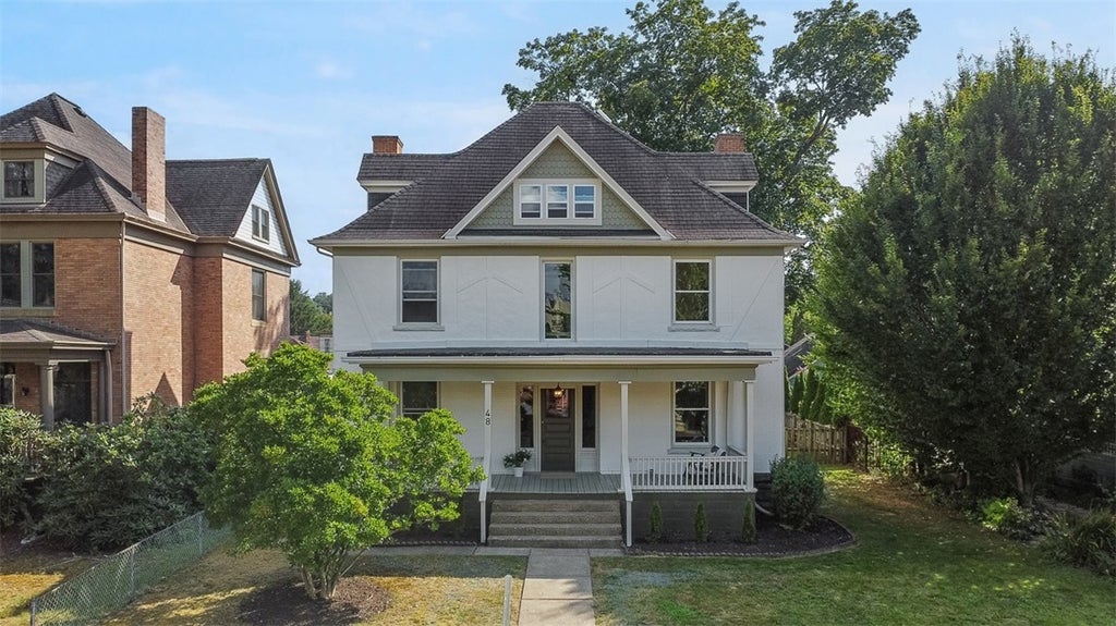 Step onto one of Crafton’s most charming historic streets and fall in love with this big brick Victorian beauty on a level, fenced lot. Original woodwork, pocket doors, and built-in cabinetry blend seamlessly with fresh updates. The center hall entry opens to light-filled rooms with refinished hardwood floors on the main level, new carpet upstairs, and fresh paint inside and out. The brand-new kitchen features new cabinets, counters, a stylish coffee bar, and updated lighting. Other improvements include new windows, a waterproofed basement, and modern fixtures throughout. Relax on the large front porch, entertain in the fenced backyard, and enjoy the convenience of living on a quiet, walkable street just minutes from the city. A rare mix of history, charm, and move-in-ready updates!