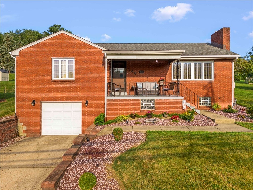 Brick ranch-style home with 3 bedrooms, 2 full bathrooms, a finished lower level, and garage space for four vehicles. The property combines traditional architectural elements with modern features. An open living room connected to the dining area and kitchen reflects modern living. This design brings in more light, encourages socialising, and creates a comfortable space for everyday life. The bedrooms are spacious, and there are two full bathrooms suitable for families. The home includes a large game room with a wet bar, suitable for recreation and entertainment. The laundry area on the lower level too. A 2-car tandem integral garage on the main level, a 2-car detached garage for extra vehicles, and two off-street parking pads for visitors or recreational vehicles provide ample parking options. Outside is a paver patio designed for outdoor activities and relaxation. Additionally there's a dedicated storage room designed to keep your living spaces organized and clutter-free.