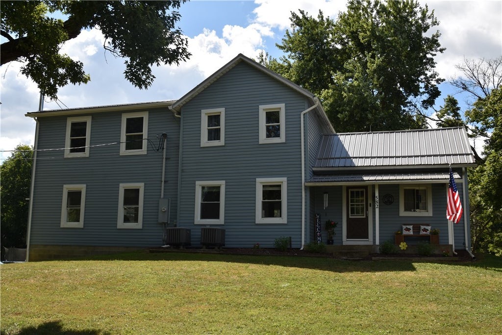 This beautifully remodeled farmhouse offers the perfect blend of rustic charm and modern convenience with endless space, situated on 2.44 private acres in Wilmington school district. The spacious floor plan features four bedrooms and two full bathrooms, highlighted by high ceilings, hardwood floors, and numerous updates throughout. The kitchen is a true centerpiece with a live-edge custom bar, farmhouse tracy sink, and authentic barn beam accents. Enjoy a separate office space with barn wood and 1st floor laundry. A wood burner in the living room adds both warmth and efficiency, creating cozy winter nights while helping to reduce heating costs. Outdoors, mature fruit trees provide natural beauty and seasonal enjoyment. Additional features include dual 200-amp electric service and a reverse osmosis system, ensuring comfort and functionality. This property is a rare opportunity for those seeking privacy, character, and move-in ready updates in a serene setting Only 5 minutes from 79.