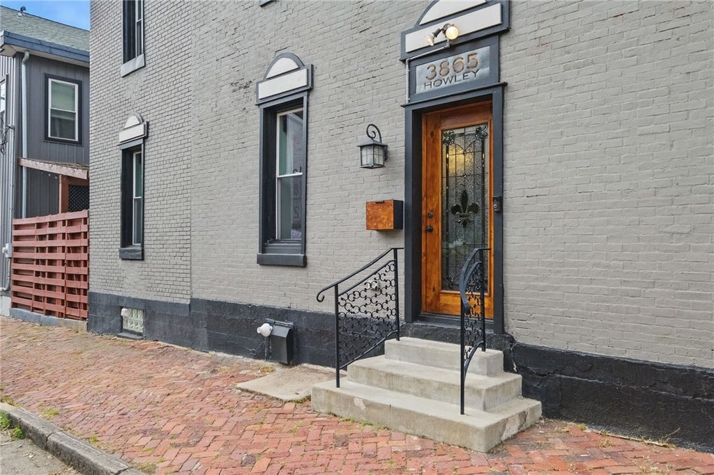 An urban oasis, situated between Butler St & Bloomfield, this 4 bedroom, 3 full bath home blends modern comfort with hip, chic finishes. From the cosmopolitan curb appeal to the jaw dropping 1st floor, everything about this home is just plain cool. Hardwood floors, exposed brick, a two-sided gas fireplace, & a suspended staircase all contribute to the overall vibe, but the kitchen is the heart of this home. Modern single touch lift system cabinets, granite countertops, a built in concrete table, & a backlit tin tray ceiling + sleek pendant lighting make this a kitchen you'll want to spend all day in. A full bath is connected to the laundry space which provides access to the private yard & rooftop deck + the 2 car garage. On the 2nd floor you'll find 3 bedrooms & a large hall bathroom. The owner suite spans the 3rd floor, its wood beams warm the space while its glass door bathroom & skylight bathe the space in sunlight. A sophisticated, contemporary house that will exceed expectations.