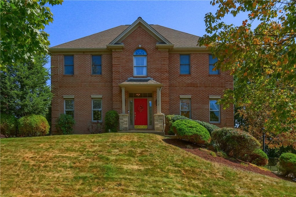 Welcome to this stunning home in one of the area’s most desirable communities, where elegance meets comfort and functionality. From the curb appeal to the grand foyer with dentil crown, every detail shines. French door leads to a private office with wainscoting and built-ins, while the elegant living room with oversized windows flows into the formal dining room, perfect for gatherings. The updated gourmet kitchen boasts stainless steel appliances, modern cabinetry, abundant counters, a custom backsplash, and both casual and eat-in dining with access to the new covered deck. The family room has a floor-to-ceiling brick fireplace and outdoor walk-out. Upstairs, the primary suite offers a tray ceiling, walk-in closet, and spa bath with dual vanities, jet tub, and private water closet. Spacious guest rooms share a hall bath. The lower level hosts a game room, bar, full bathroom and flexible living space. Outside, enjoy the fenced yard and covered deck—ideal for relaxing or entertaining.