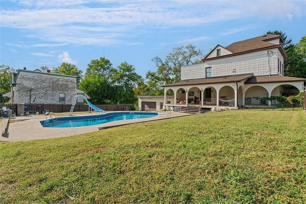 Nestled in the heart of Reserve Township, this charming 3 bedroom, 1.5 bath home was thoughtfully designed for entertaining and living alike. 10 minutes from Downtown Pittsburgh, the residence is private retreat with incredible convenience. Spacious front porch overlooks an in-ground pool, a large patio, and a level front yard—perfect for summer gatherings or quiet evenings outdoors. The main floor flows seamlessly through an open floor plan living room, dining room, and kitchen. The first floor is a large oversized kitchen with abundant counter and cabinet space, a dining area ideal for hosting, a bright living room, a half bath, and a laundry room. Second floor is the three bedrooms, a retro office, and the full bath. All rooms tastefully redone with lovely flooring and modern finishes. Third floor is a massive two room space that could easily be converted into bedroom four/gameroom/offices/art studio. Large two car garage and tons of storage in the basement.