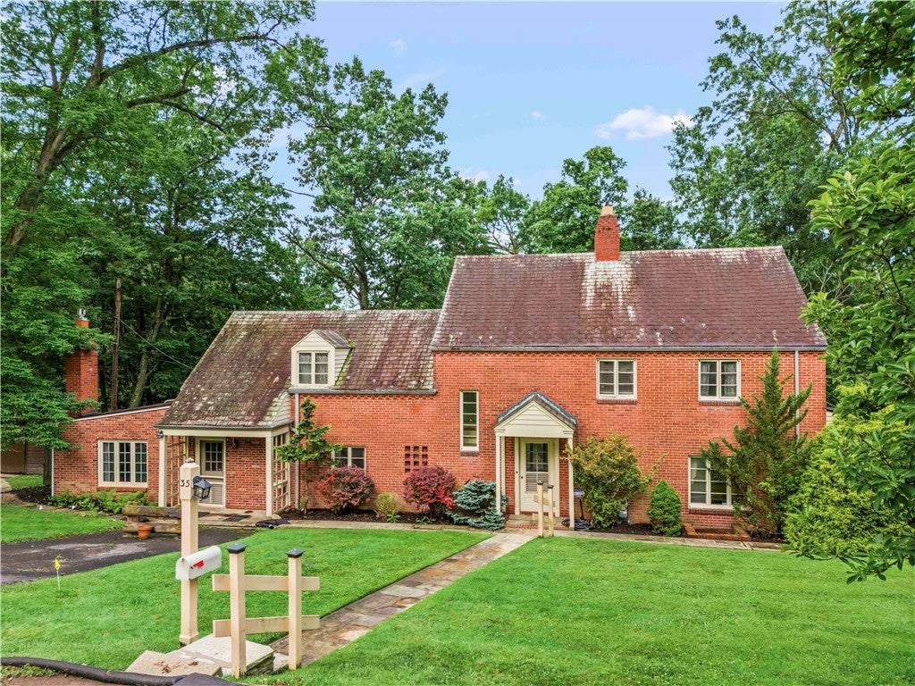 Welcome to 35 Redstone Lane! Nestled on a peaceful cul-de-sac surrounded by mature trees, this charming brick colonial offers space, character, and privacy. The elegant living and rustic family rooms each feature beautiful fireplaces, with bay windows flooding the home with natural light. The fully equipped kitchen includes a walk-in pantry and bonus "laundry chute." Enjoy the screened-in sunroom and a greenhouse/ farm to table option. Upstairs, find 4 spacious bedrooms, 2 full baths, full of vintage finishes. A beautiful handmade curved staircase, original hardwood floors, beamed ceilings, and custom built-ins add timeless charm to this unique home. The main level offers a flexible bonus room, perfect for an office or guest space. The basement provides generous storage, laundry, and a workshop area. Redstone Lane combines classic design with peaceful living—close to everything yet tucked away from it all. Don’t miss this one-of-a-kind home!
