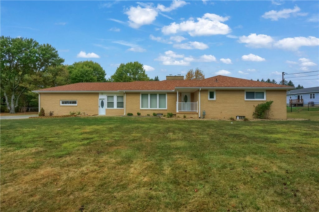 This sprawling three-bedroom brick ranch offers ideal one-level living on a table-top flat, acre-plus lot. Enjoy a welcoming front covered porch and hardwood flooring throughout the main level. The oversized primary suite features a private bath with a walk-in shower, while the updated main hall bathroom adds modern comfort. The living and dining rooms are filled with natural light, and the living room includes a cozy fireplace. The kitchen boasts newer appliances and flows into an enormous breezeway—perfect for entertaining or serving. Step outside to a rear deck with a covered gazebo for three season enjoyment. An oversized attached garage provides ample space. Downstairs, discover a finished game room with a second full kitchen and fireplace, plus an additional bedroom or den and generous storage space. This home combines comfort, functionality, and exceptional indoor/outdoor living spaces. Also includes a new roof and updated electrical box.