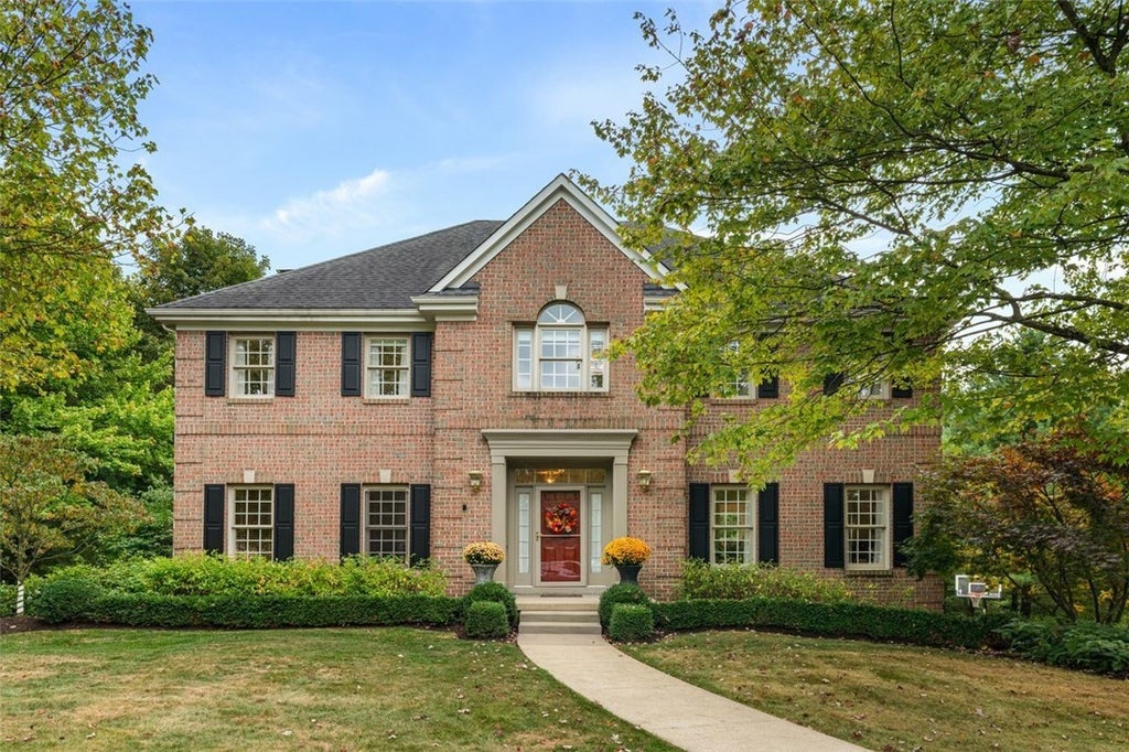 Wow, is the feeling you get from the moment you enter into this classic brick home in Greenbriar Estates! Hardwood flooring, timeless moldings, paneled den, elegant dining room and an expanded modern kitchen with high end finishes! Spacious family room with a beautiful fireplace and French doors leading out onto a huge deck with stacked stone fireplace. The Paneled Den with built in bookcases and a French door offer privacy and is a great place to work. The second level offers a primary suite with tray ceiling, walk in closet and a gorgeous on trend marble bathroom. Three additional bedrooms with soft surroundings, large closets and lots of windows. Continue enjoying this immaculate home with a spacious game room and full bath. Relax or entertain on the patio surrounded by green space and professional landscaping. North Allegheny Schools just minutes away. Cranberry Twp., Wexford and major highways just 5 minutes. Live a great life with trendy shopping and restaurants within minutes!