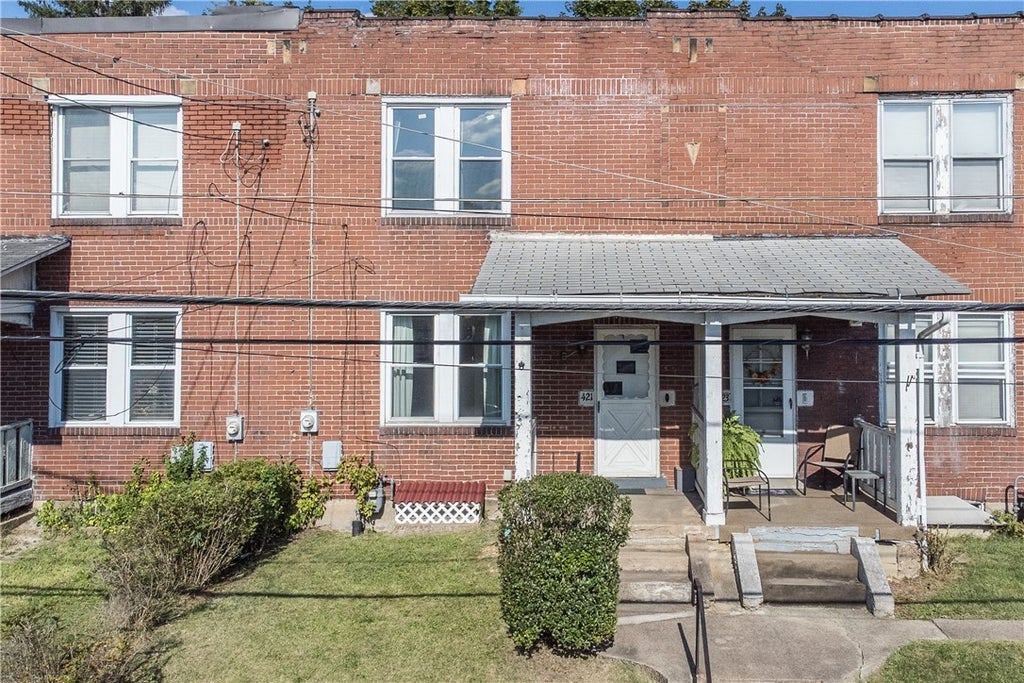 This timeless brick townhome in Forest Hills is ready to welcome its next owners. A covered front porch leads into the inviting living room, filled with natural light from newer double-pane windows throughout and featuring a decorative brick fireplace and ceiling fan. A separate dining room with ceiling fan flows into the kitchen, which opens directly to the back patio—flat and private with hedge-lined borders. Beyond the patio, a large yard extends to the alley, offering space to enjoy outdoors and potential for adding off-street parking. Upstairs, two generously sized bedrooms, including one with a ceiling fan, a crisp and bright bath, and a convenient hallway closet complete the layout. The spacious unfinished basement provides abundant storage and laundry hookups. Original wooden doors with vintage hardware preserve the home’s character. With great rent potential, this home has been lovingly cared for by the same family for many years.