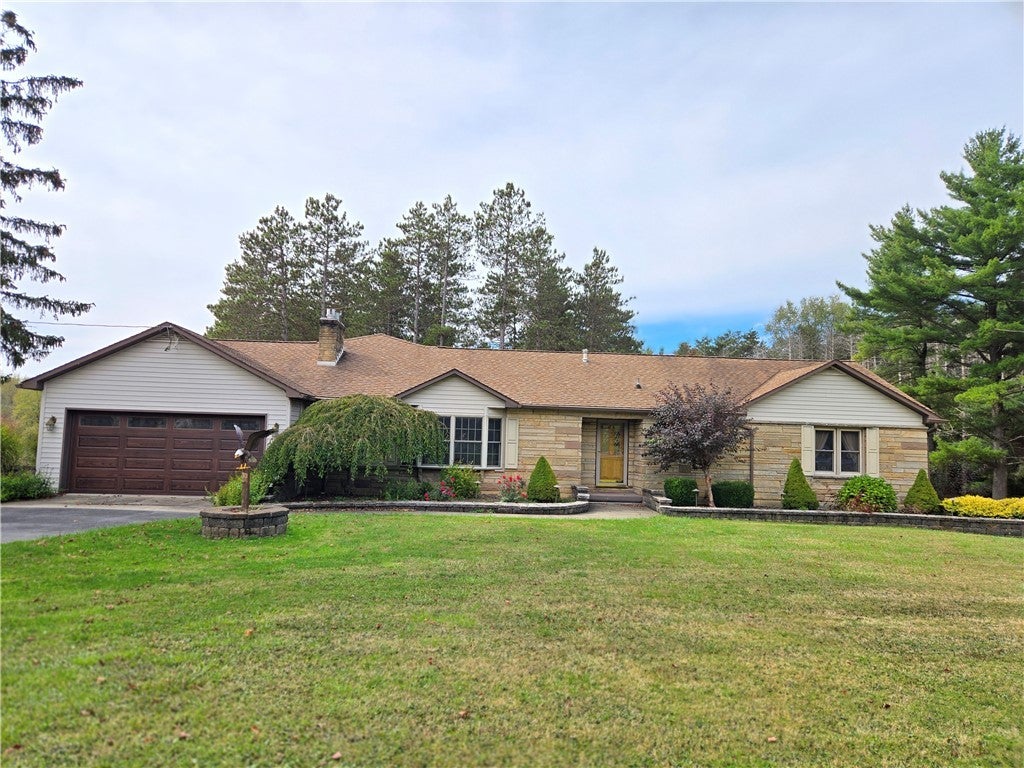 Don’t miss your chance at this One-of-a-Kind Retreat, Charming Large Ranch Home with so much to offer! Enter into this Beautiful home with Living Room with Stone Gas Fireplace and Separate Sitting Area. Main Floor features Family Room w/Wood Ceiling, Stone Accent Wall, lots of natural light, Kitchen with island, wood cabinets, stainless steel appliances, Pantry room, & Dining Room. Primary Bedroom has en suite Full BA w/large tiled shower & closet for washer/dryer hookup. In addition, there are 3 more BR's 2 Full BA, & main floor office. Wind down in enclosed Hot Tub Room surrounded by tons of natural light. The Lower Level has a large finished room with Full BA and gas brick fireplace. The Exterior can't be beat, a Stocked Pond, Basketball Court/Tennis Court, Pavillion, Patio, & Covered Porch. You will also find 2 Out buildings w/electric & room for 4 more vehicles, Storage, & Shop area. 3 Drilled Wells on Property. Lets make this your Primary Home or your Perfect Getaway Home!